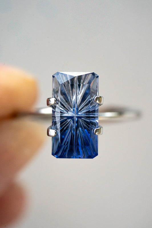 Starfall Ring- Size 7 Fantasy Cut Medium Periwinkle Blue Lab Sapphire